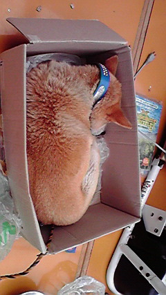 何故か段ボール箱に入っていびきをかいていました(笑)